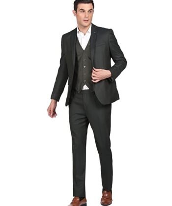 Arrow Men Olive Tailored Regular Fit Self Designed Three Piece Suit